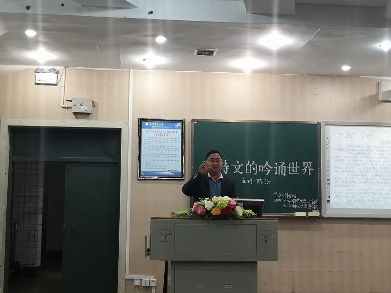 3月22日,受省属重点大学西华师范大学邀请,民进广元市利州区东坝支部副主任、“川北吟诵”非遗传人、利州区图南小学校长陈洪赴西华师范大学,为文学院本科生、研究生作了一场《古诗文的吟诵世界》专题讲座,受到西华师大学子的热烈好评。