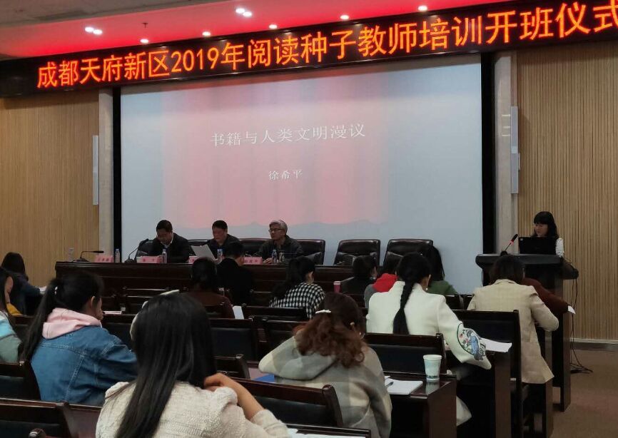 3月28日,由广元市国学研究会、国学教育社科普及基地承办的成都天府新区2019年阅读种子教师培训班开班仪式在华阳中学举行。 近年来,在有关部门的领导下,市国学研究会、国学教育普及基地开展的国学吟诵普及讲座,已分别走入广元、成都、德阳、绵阳、南充、达州、巴中多个地市的数十所学校和诗词学会,均在当地受到了欢迎。 据了解,广元市国学研究会的核心骨干成员均为广元民进会员。