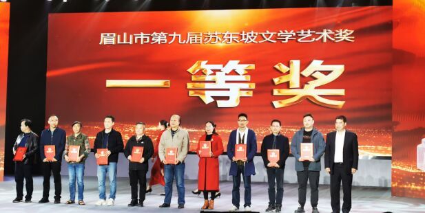 4月9日下午,由中共眉山市委宣传部指导、眉山市文学艺术界联合会承办的庆祝中国共产党成立100周年·眉山市第九届苏东坡文学艺术奖颁奖暨原创舞台艺术作品展演在眉山市职业技术学院艺术中心隆重举行,全市文艺界代表齐聚一堂,共享文化艺术成果,向党的百年华诞献礼致敬。