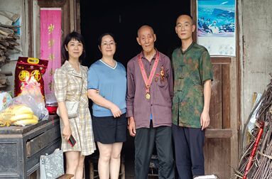 8月1日,中国人民解放军建军95周年纪念日当天,民进峨眉总支主委王敏(男)带领副主委谯艳,教育支部主委王敏(女)来到双福镇合江村,看望慰问抗美援朝老兵胡光映老先生,代表峨眉总支为其送上慰问金和大米、牛奶、水果等。 王敏亲切地与老人交谈,了解到胡光映老先生于1953年随部队奔赴抗美援朝前线,次年8月就在瓦房店光荣立功。老人向王敏一行展示了他珍藏的抗美援朝出国作战70周年纪念章和光荣在党50年荣誉证。沉甸甸的功勋章背后,是无数军人抛头颅,洒热血,用生命去保卫祖国边界的安宁。王敏紧紧握着老人的大手,“向您致敬,感谢您们用青春热血换来祖国山河无恙。我们将沿着您们的道路,不忘初心,砥砺前行!”