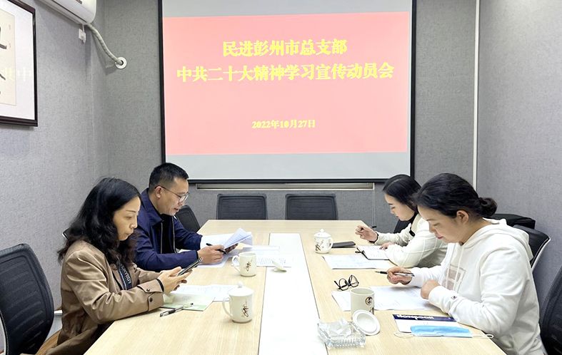 10月27日,民进成都市彭州市总支召开主委专题学习会议,安排部署总支学习宣传贯彻落实中共二十大精神相关工作。
