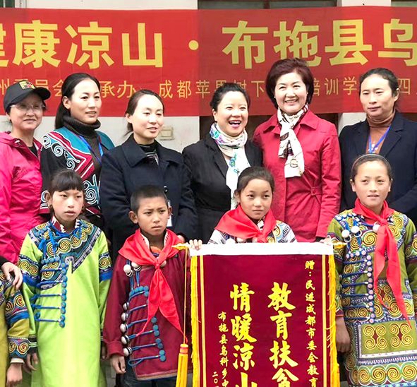 伍苹校长热心公益,20年来参与多个公益项目,包括“脸盆计划”、理塘县牧区医生培训项目、“致美四川根系计划”,以及在中国极具影响力的“担当者行动”项目,该项目致力于中国乡村的儿童阅读推广,建立图书角,培训乡村教师。光2017年一年,伍苹校长就先后前往广西田东、西藏林芝鲁朗、福建安溪、四川西昌等地为当地乡村教师和孩童做公益培训和讲座十余次。五年来,她带领全校师生募捐五万余元,捐赠给担当者项目,在两个省六所学校建立了二十余个图书角,获得了“担当者行动”嘉奖。