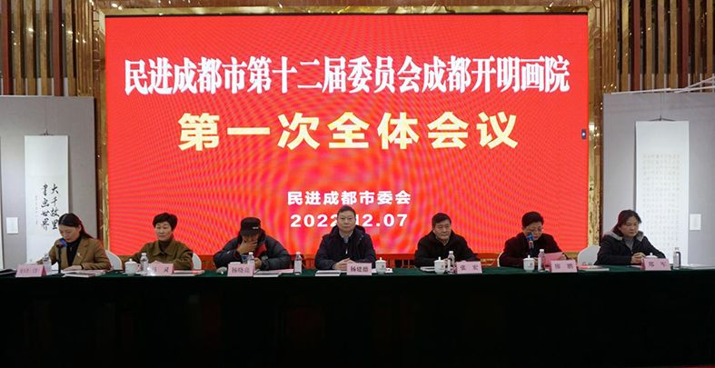 12月7日,民进成都市第十二届委员会成都开明画院第一次全体会议在四川福宝美术馆召开。民进四川省委副主委、成都市委会主委杨建德,民进四川省委会副主委张宏,民进成都市委会专职副主委兼秘书长杜小丹,民进四川省委会社会服务处处长郑军,民进四川开明画院院长杨晓亮,民进成都市委会副秘书长夏冬梅出席会议。会议由杜小丹主持,成都开明画院艺术家代表24人参加会议。