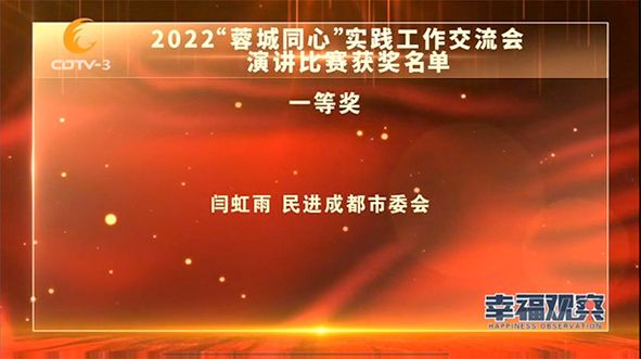 近日,民进成都青羊区总支秘书长闫虹雨代表民进成都市委会参加了由市委统战部举办的2022“蓉城同心”实践工作交流会“贯彻二十大 建好示范区”主题演讲比赛并获一等奖。