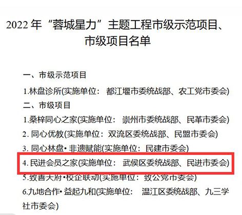 民进会员之家成功入选2022年“‘蓉城星力’主题工程市级项目”。