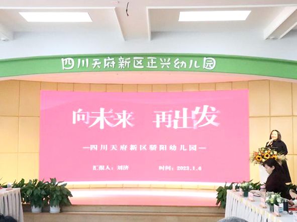 2023年1月6日,四川天府新区社区治理和社事局教育处在正兴幼儿园召开了天府新区幼儿园2022年工作总结及2023年高质量发展座谈会。民进天府新区支部会员、四川天府新区骄阳幼儿园园长刘济作为普惠性民办幼儿园唯一代表参加座谈会,并作题为《踔厉奋进向未来 初心不改再出发》的汇报发言。发言围绕“回顾过往,总结实效经验促进步;探讨共融,拓展家园共育新途径;畅想未来,围绕质量主题求突破”三个方面分享了骄阳幼儿园再获天府新区2022年普惠性民办园专项奖的经验。