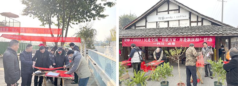 2023年1月6日、9日上午,民进双流区总支的书法家们分别走进黄水镇云华社区、彭镇彭家场社区开展了癸卯(2023)民进全国“春联万家•奔赴新征程”活动。总支会员程绍君、卢勇等5位艺术家,为当地群众送上了新年的美好祝福。民进成都市委会相关处室、双流区委统战部相关科室负责人参加了活动。
