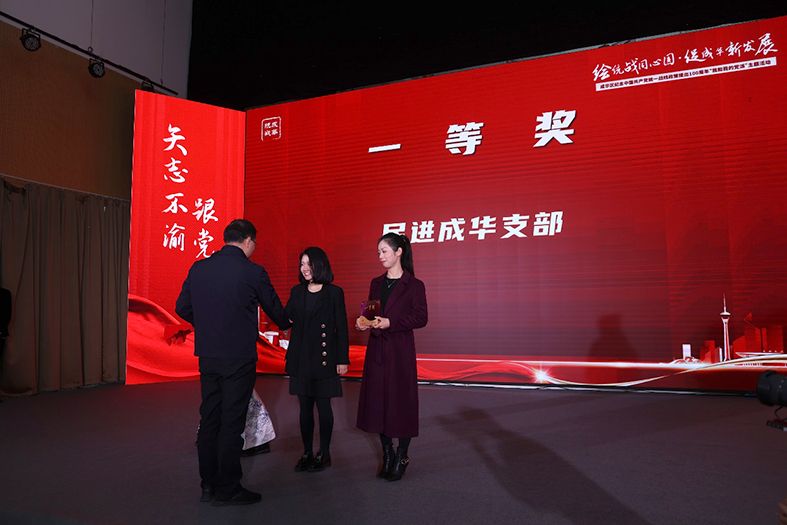 陈薇、殷双果的演讲,以支部会员邓乃斌、王映辉的事迹为主线,通过他们在成华统一战线上点点滴滴的故事,折射出民进成华区支部成立30年来的发展历程。两位会员深情并茂的讲述,加上殷双果琵琶弹奏出的“珠玉”声,一下子将整个会场的气氛推向了高潮,折服了在场的所有观众,最终她们以97分的高分名列7个党派之首,夺得比赛头魁。