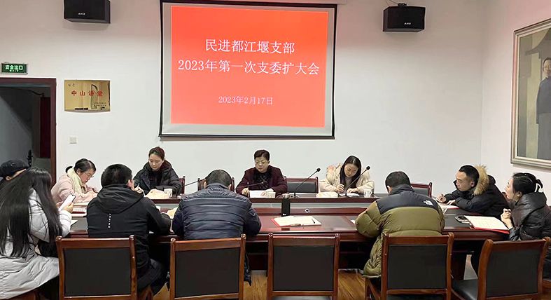 2月17日,民进都江堰市支部在都江堰市党派大楼召开了第一次支部委员扩大会议。会议传达了省委十二届二次全会、市委十四届二次全会暨市委经济工作会议以及都江堰市“两会”精神,并学习了《中国民主促进会章程》。