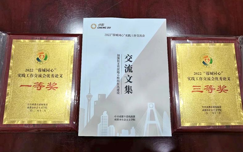 民进青白江区总支游先彬、杨帆撰写的《从中共百年党史看加强民主党派作风建设》《关于加强内部监督机制建设带动提升民主党派作风建设效能的几点思考》被选入交流文集,并分别被评为2022年“蓉城同心”实践工作交流优秀论文一等奖和三等奖。