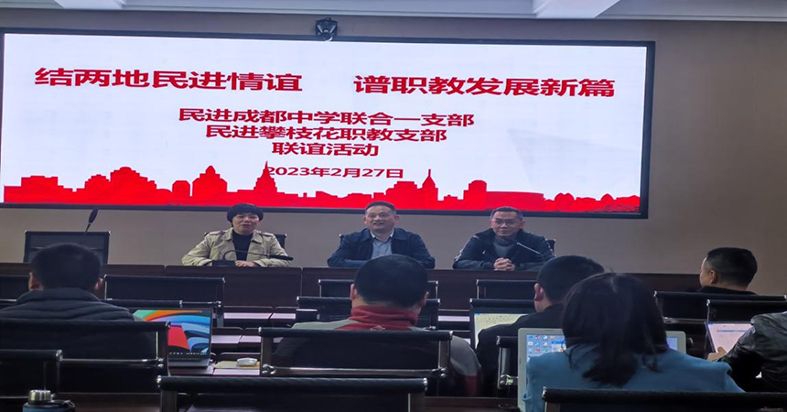 2月27日至28日,民进成都市中联一支部主委、成都工业职业技术学院龙天才副教授一行,赴攀枝花市经贸旅游学校与民进攀枝花职教支部开展联谊活动。民进攀枝花职教支部主委、攀枝花经贸旅游学校校长傅梅主持会议。民进成都市中联一支部代表、民进攀枝花职教支部全体会员参加联谊活动。