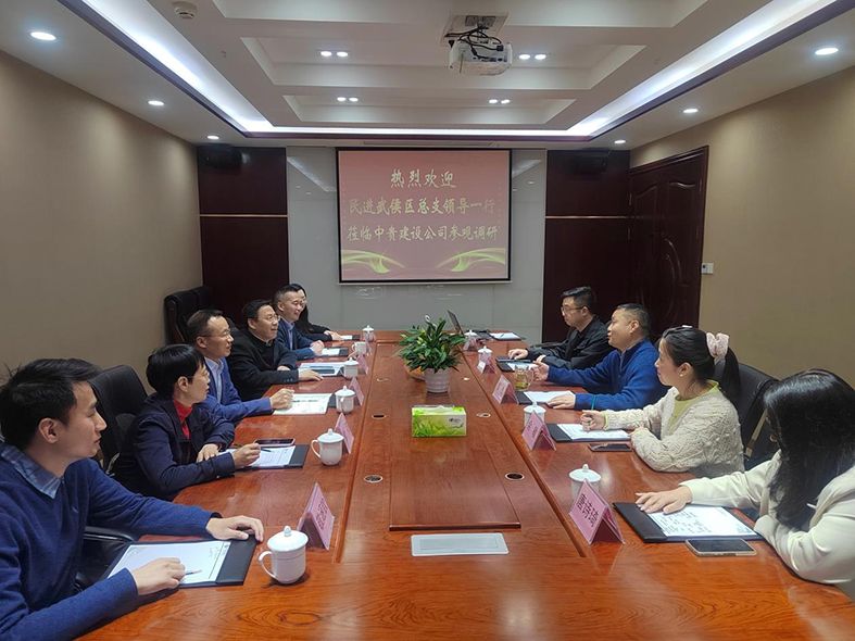 为了解民进会员、中贵建设公司董事长袁杰所在企业的运营情况, 4月6日,民进武侯区总支一支部开展了走访调研活动。总支主委张增权,副主委曾征、潘万勇,一支部主委邓炜、副主委敬涵钦及会员刘彤璠参加了活动。