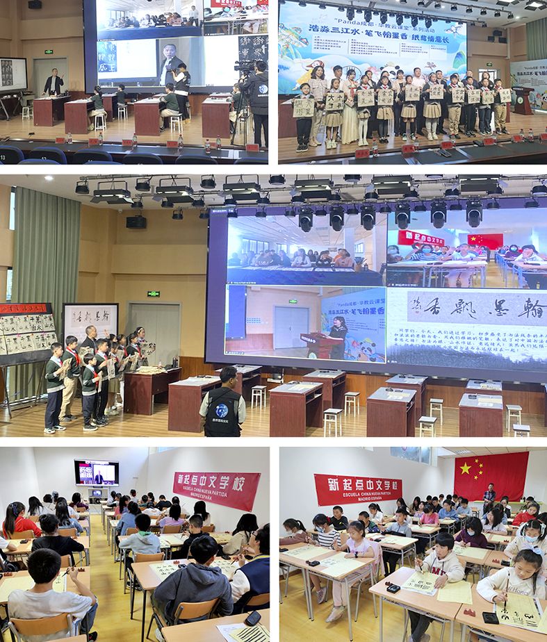 为弘扬中华优秀传统文化,加强中西文明交流互鉴,持续扩大海外华文教育的影响力,4月23日,“Panda成都·华教云课堂”系列活动—“浩淼三江水 笔飞翰墨香 纸鸢情意长”在金堂县举行。金堂县总支会员、民进金堂开明书画院副院长陈刚以云课堂形式为西班牙新起点中文学校、西班牙拉诺列尔斯华文学院学生授课,带领西班牙学生详细了解中国书法的发展和演变,认识笔墨纸砚文房四宝。最后,在陈刚的带领下,孩子们一笔一划书写出甲骨文、隶书“万水千山”,充分感受中国书法之美,领略中国传统文化的魅力。