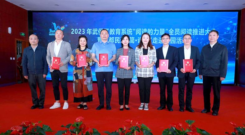 民进四川省委会副主委、民进成都市委会主委、成都市政协副主席杨建德,武侯区委常委、宣传部部长、区委教育工作领导小组组长潘虹,武侯区委常委、统战部部长雷晓鹏,武侯区人民政府党组成员、副区长、区委教育工作领导小组第一副组长陈丽娜,民进成都市委会副主委、武侯区政协副主席邱耘,武侯区委统战部常务副部长王睿,武侯区教育局党组书记、局长蒋晓梅出席活动。民进成都读书会第一届委员、民进武侯总支会员代表,武侯区委宣传部、统战部、教育局、文体旅局、各中小学、教办幼儿园校(园)长以及来自读者出版集团有限公司代表、四川科幻世界杂志社有限公司代表、新华文轩武侯分公司代表、武侯区图书馆和社区的代表,共计200余人参加了“简·读书”启动仪式。