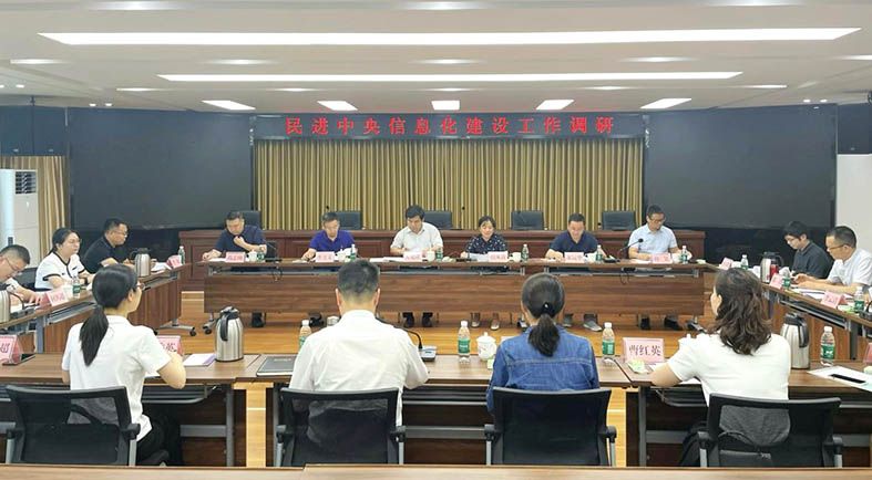 6月30日,民进中央副秘书长左延珠带队赴乐调研信息化建设工作,就民进信息化发展五年规划执行落实情况,信息化建设主题年成果总结、拓展、应用以及在工作中遇到的困难问题,展开专题调研与座谈。调研组一行有民进中央信息化专家组成员、北京市教育科学研究院培训中心主任李文义,中央统战部信息中心干部朱运华,民进中央办公厅信息技术管理处处长苟志刚,信息技术管理处二级调研员韩笑,民进北京市委办公室副主任李松,民进上海市委办公室三级主任科员曹彦明。民进四川省委秘书长曾从莉,办公室主任钟潜,副主任文习超,乐山市人民政府副市长、民进乐山市委主委毛剑,副主委尹秀英、曹红英,秘书长樊姣陪同调研。