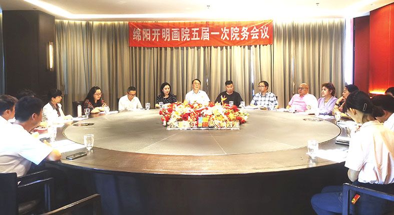 6月30日,绵阳开明画院五届一次院务会议召开。绵阳市人大常委会副主任、民进市委会主委李京平出席会议并讲话,民进市委会秘书长赵波,绵阳市游仙区红十字会党组书记、常务副会长王冬砚出席会议,画院在绵班子成员、副秘书长参加会议。会议由绵阳开明画院院长魏福平主持。
