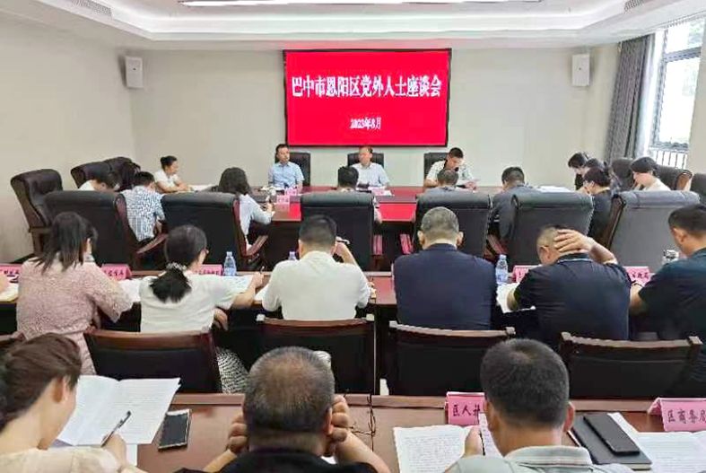 8月21日,巴中市恩阳区召开党外人士座谈会,就中共巴中市恩阳区委三届四次全会文件听取各民主党派、区工商联和无党派人士代表的意见建议。中共巴中市恩阳区委副书记苏伟主持座谈会并讲话。民进恩阳支部主委李平、委员李明才参加会议并发言。