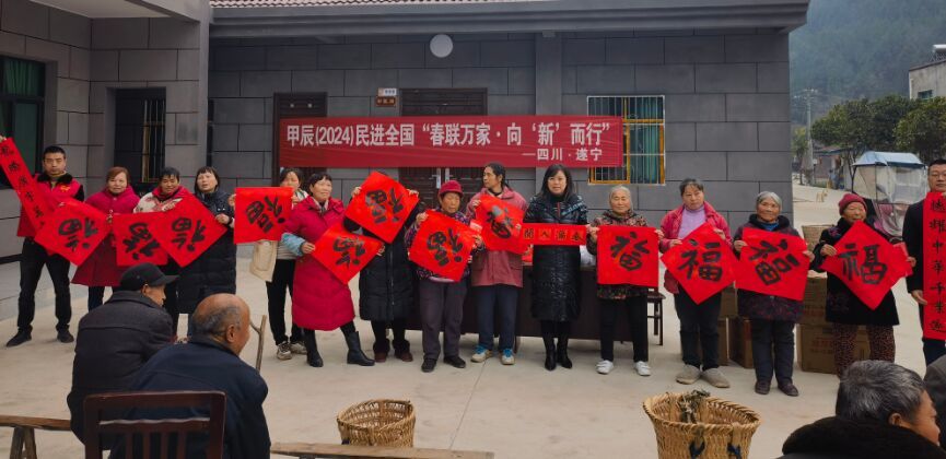 1月31日,民进遂宁委会赴联系点射洪市潼射镇马黄寺村开展“春联万家·向‘新’而行”暨新春慰问活动。民进遂宁市委会副主委、秘书长杨天玲,民进遂宁市委会副主委、遂宁中学副校长黄礼国出席活动。 活动在马黄寺村新建的党群服务中心(系民进遂宁市委会联系协调建设资金)举行,现场发放了遂宁开明画院书画家为村民们手写的春联、福字,并对20名困难农户开展了新春慰问,为他们送上了米、面、油等生活物资。 科学推进城乡融合发展,全面助力乡村振兴。遂宁民进坚决服从中共遂宁市委的领导,积极参与基层联系帮扶工作,努力为村民做好事、办实事,在增添基础设施、规划特色产业以及教育、文化等民生角度多方发力,为市委市政府中心决策的落实保驾护航,充分践行“立会为公、参政为民”。