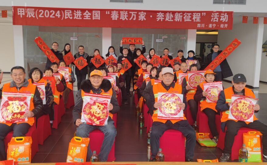 为进一步传承和弘扬中华民族优秀传统文化,增添辞旧迎新、春意更浓春节气氛。2024年2月2日,农历腊月二十三,民进遂宁市经济技术开发区支部在蓝天佳好科技有限公司的精心组织和大力支持下开展了甲辰(2024)民进全国“春联万家.奔赴新征程”活动。党群工作部唐珊副部长出席了本次活动,民进经开支部部分会员参加活动。 活动现场热闹非凡,书法爱好者铺纸研墨饱含创作热情,挥毫泼墨,一幅幅飘着墨香的春联和福字,承载着环卫工人新年美好的愿景;传递着民进会员对环卫工人满满的祝福,融融的暖意;渲染出了新春佳节喜庆的氛围。工人们欣赏着、交谈着,兴高采烈地挑选自己喜爱的春联,脸上洋溢着幸福的笑容。 活动最后,党群工作部唐珊副部长、民进遂宁市经开区支部主委朱永兴分别向工人致以节日的问候与衷心的祝福,并送上了新年礼品。