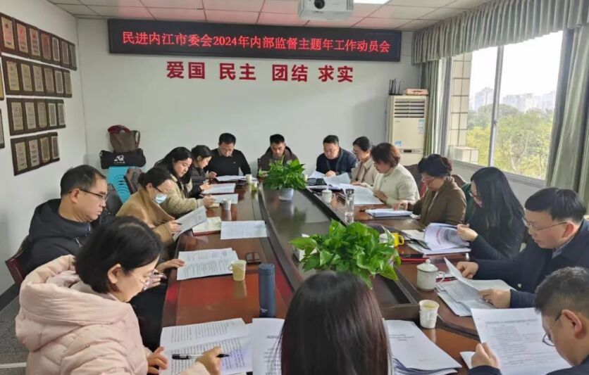 3月6日,民进内江市委会召开2024年内部监督主题年工作动员会,民进内江市委会主委陈朗出席会议并作动员讲话。副主委秦琴、吴云梅、岳璋,秘书长刘亚兰参加会议,各市委委员、支部负责人参加会议。 会上,岳璋从主题年工作方案起草背景、全面把握主题年工作重点、注重工作方式扎实推进三个方面介绍了《民进内江市委会2024 年内部监督主题年工作方案》的主要内容并提出了细化要求。 陈朗强调:一是加强学习宣传,强化从严意识,要坚持理论联系实际,深化对民主党派内部监督工作的经验总结和理论研究。二是完善工作方式,加强对重点对象的监督建立健全述职报告制度,提升内部监督的整体效能。三是提高监督效能,加强内部监督委员会自身建设,切实提升履职能力和水平。四是完善内部监督制度,进一步完善市委会内部监督制度体系建设,加强内部监督工作规范化、程序化。希望全会上下振奋精神,担当作为、加快节奏、真抓实干,努力推进内江民进内部监督工作迈上新台阶,展现自身建设新面貌,奋力在谱写中国式现代化内江新篇章中取得新成绩。