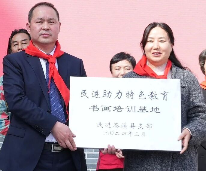 3月18日,民进苍溪支部“民进助力特色教育书画培训基地”在苍溪陵江小学校挂牌成立。民进中央开明画院副院长、四川开明画院院长杨晓亮带领十余位艺术家受邀赴苍参加挂牌活动。 苍溪陵江小学校先后荣获“全国中华优秀文化艺术传承学校”“全国美术教育先进学校”“全国诗教先进单位”“四川省艺术教育特色学校”“四川省校园文化典范学校”等200多项荣誉称号,教育教学质量一直居市、县前列。蓓蕾画社、红领巾书协和小天鹅舞蹈团先后有600余件书画作品在国内各级比赛中荣获一等奖。民进苍溪支部将“书画培训基地”挂牌成立在苍溪陵江小学校,无疑将进一步助推学校传统文化的长足发展、提升学校办学品位,为学生展示才华提供更加广阔的平台,为学校的美育注入新的生机与活力。 县人大常委会副主任、民进苍溪县支部主委王正蓉说,“民进助力特色教育书画培训基地”虽然基地挂牌成立在苍溪陵江小学校,但民进苍溪支部将结合“进教彩虹”品牌活动,携手四川开明画院,将教育培训活动覆盖全县各级学校,同时广泛接纳社会各界书画爱好者的学习和交流。下一步还将持续完善基地的各项软、硬件设施。