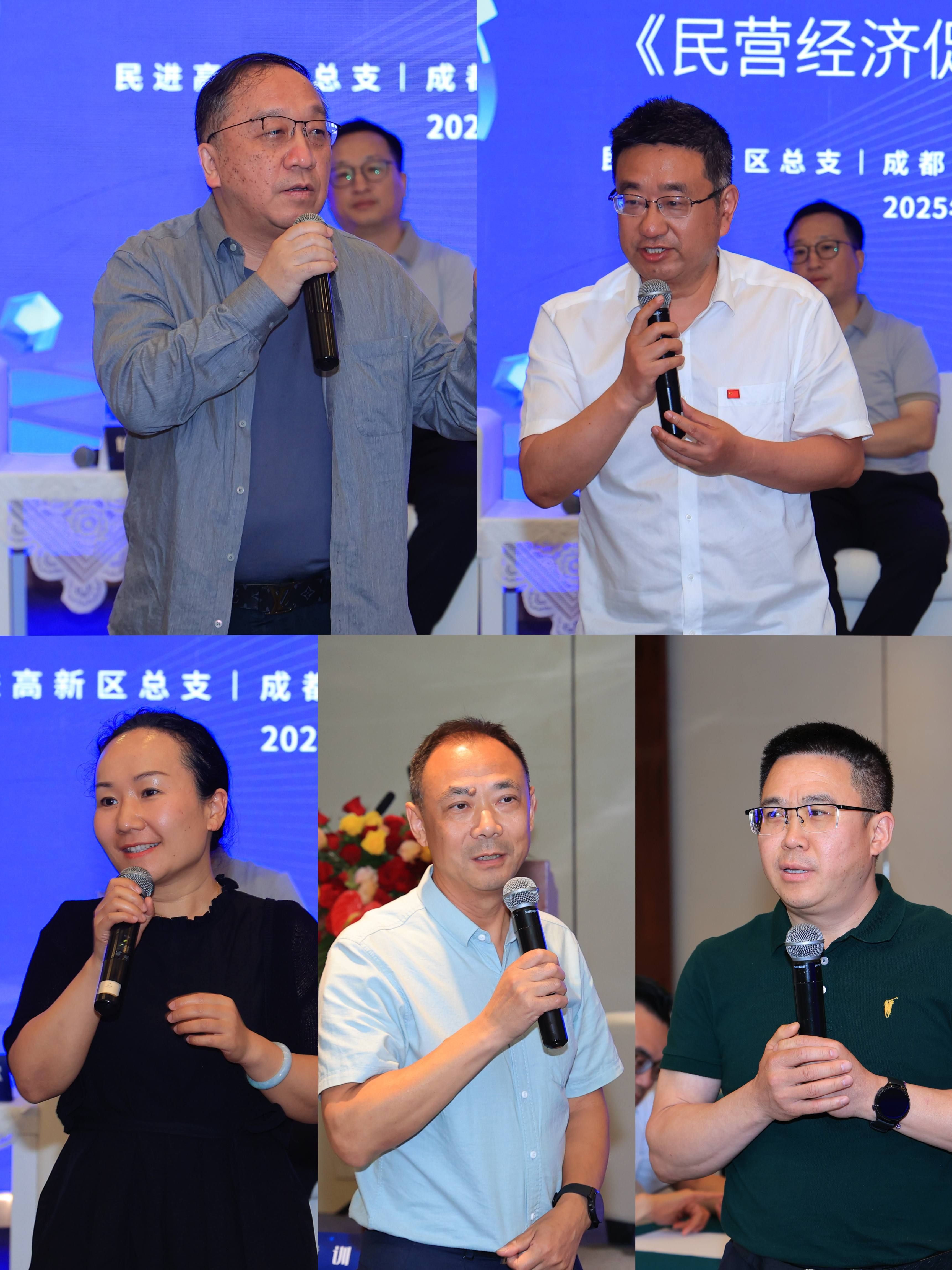 在企联会常务副会长唐小涛主持的论坛对话环节,民进四川省委会经济工作委员会主任、西南财经大学经济学院教授刘书祥,四川省法学会商法学研究会常务理事、四川东沐光轩律师事务所主任李君临,企联会副会长、四川绿色会展新经济创新中心主任孙松风,企联会理事、清华校友会校友、德汶环能(成都)科技有限公司董事长杨武等专家学者和企业家代表,围绕《民营经济促进法》对宏观经济、民企发展的意义,法律实施落地与民企法制保障策略,重大科技项目准入机遇,政商关系风险防控等视角发表了见解。在自由发言环节,高新区总支主委、企联会名誉会长、清华四川校友会会长费永刚,电子科技大学资产管理公司原产业党委书记袁勤,天府新区骄阳幼儿园园长刘济,高新区总支副主委郑刚,恒和信律师事务所管委会副主任李大福分别就民企融资、科技创新、民办幼儿园发展难题、民营经济发展、民企维护自身合法权益等问题积极建言献策。