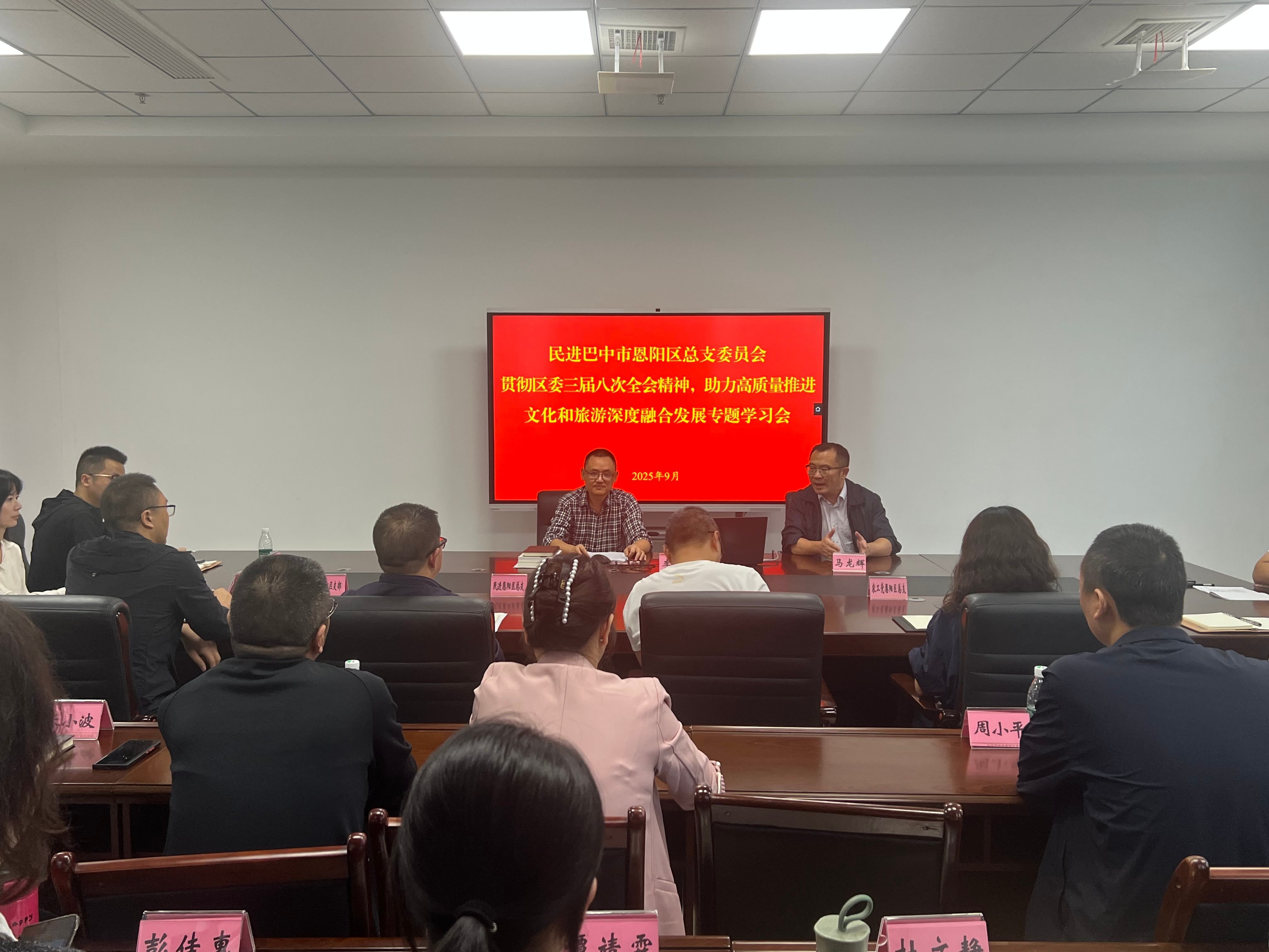 9月22日,民进巴中恩阳总支召开贯彻区委三届八次全会精神,助力高质量推进文化和旅游深度融合发展专题学习会,深入学习贯彻省委十二届七次、市委五届十次及区委三届八次全会精神,聚焦“高质量推进文化和旅游深度融合发展”主题,凝聚共识,汇聚合力,着力提升服务区域发展大局的履职效能。