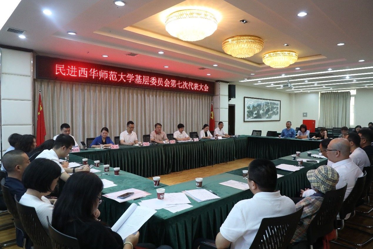 9月19日上午,民进西华师范大学基层委员会第七次会员代表大会在办公楼6楼会议室召开,圆满完成换届选举。南充市政协副主席、民进南充市委会主委黄祖军,校党委副书记毕剑,校党委常委、统战部部长周道春,民进南充市委会专职副主委申英应邀出席大会。