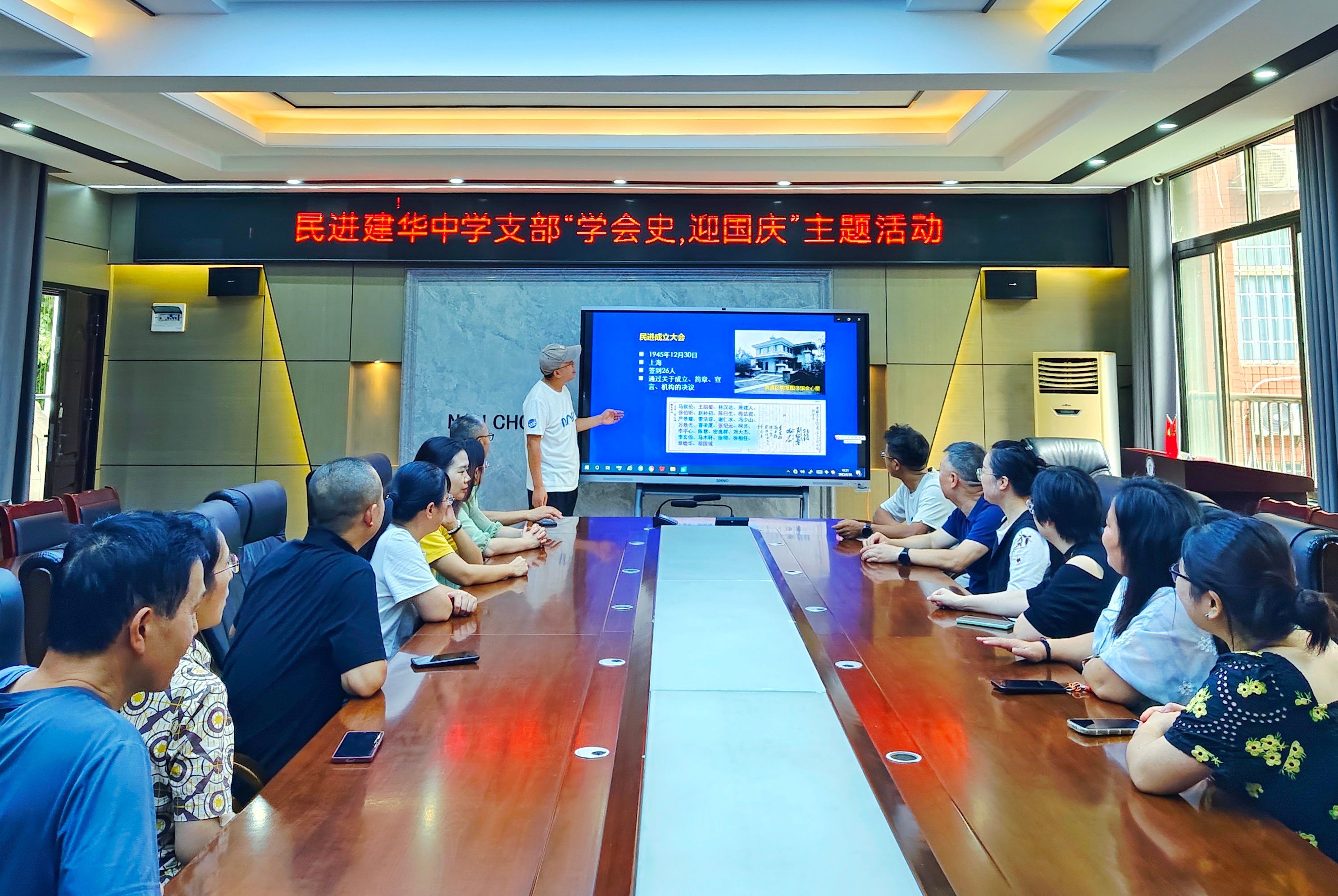 9月26日,民进南充市建华中学支部在学校表方楼会议室举行“学会史、迎国庆”主题活动。学校党委副书记罗裕胜出席活动并讲话,支部全体会员和入会积极分子参加了本次活动。