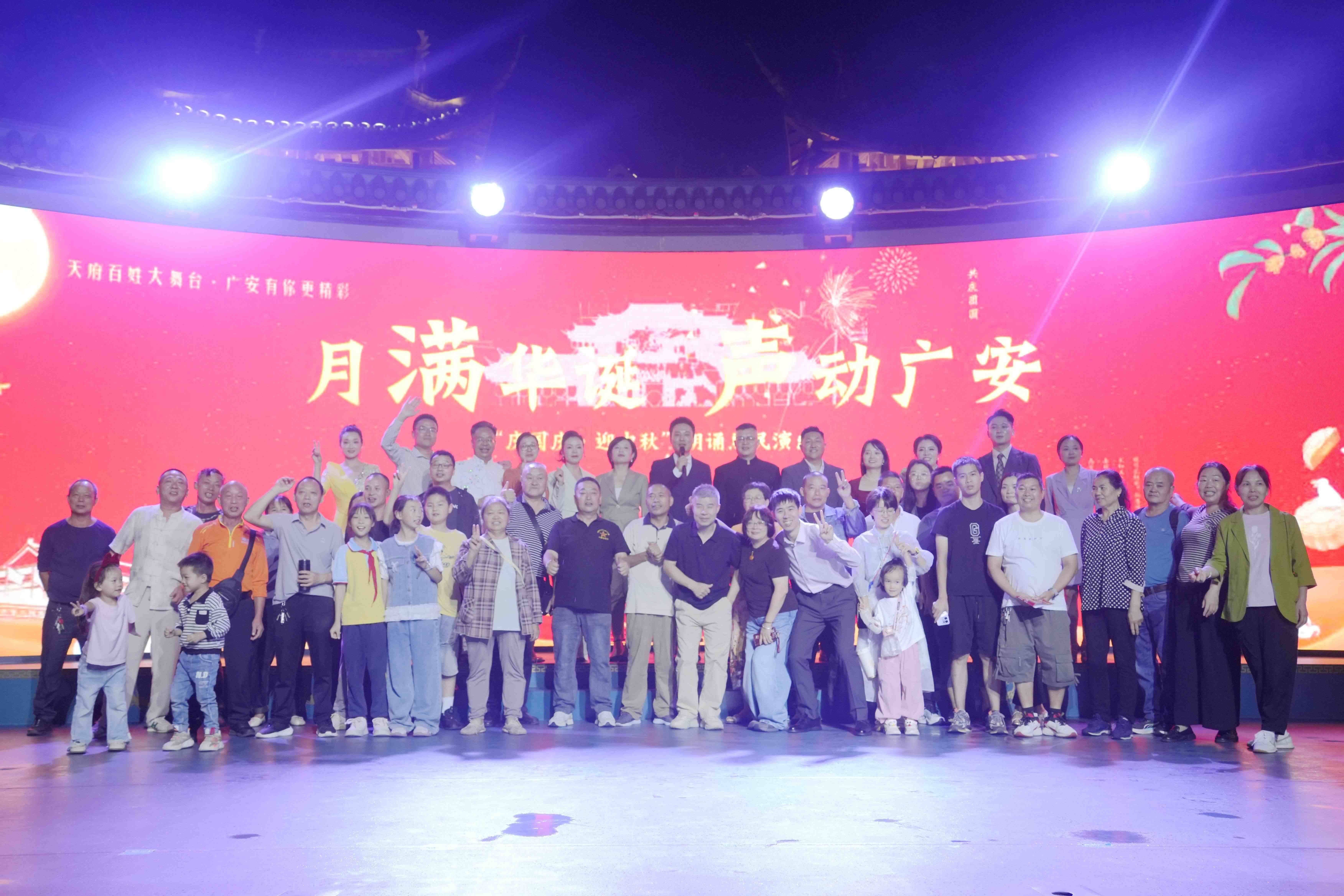 中秋月满,国庆旗红。2025 年 9 月 29 日晚,由广安市文学艺术界联合会指导,广安市广安区文化广播电视和旅游局、民进广安市总支联合主办,广安市广安区文化馆、广安市朗诵艺术家协会承办的 “月满华诞,声动广安 —— 庆国庆・迎中秋朗诵惠民演出”,在广安区广安不夜城温情启幕。这场以语言艺术为媒的文化盛宴,既为中华人民共和国成立 76 周年献礼,也为市民送上中秋团圆的美好祝福,让双节的喜悦在诗意与歌声中浸润人心。