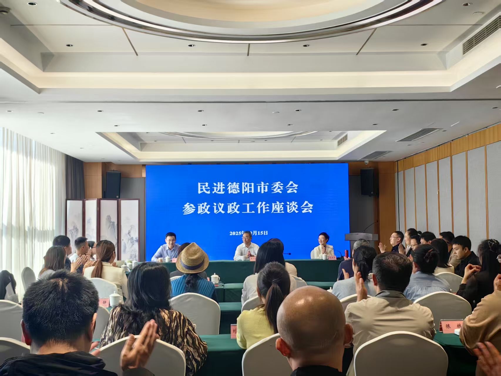 10月15日,民进德阳市委会组织召开参政议政工作座谈会,民进德阳市委会主委、市政协副主席张清良,民进德阳市委会副主委朱玉华出席会议,会议由市委会秘书长卿华主持。