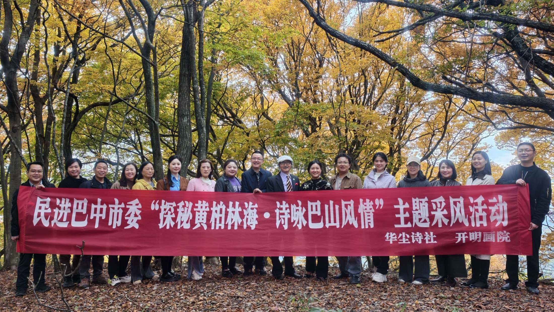 11月3日,民进巴中市委会组织华尘诗社、开明画院骨干成员20余人,赴通江县松溪乡黄柏厂林场开展“探秘黄柏林海·诗咏巴山风情”主题采风活动。恩阳总支主委李平,华尘诗社社长杨通,传媒支部支委、巴州区作家协会主席谯丽娟,开明画院院长向辰麟参加活动。