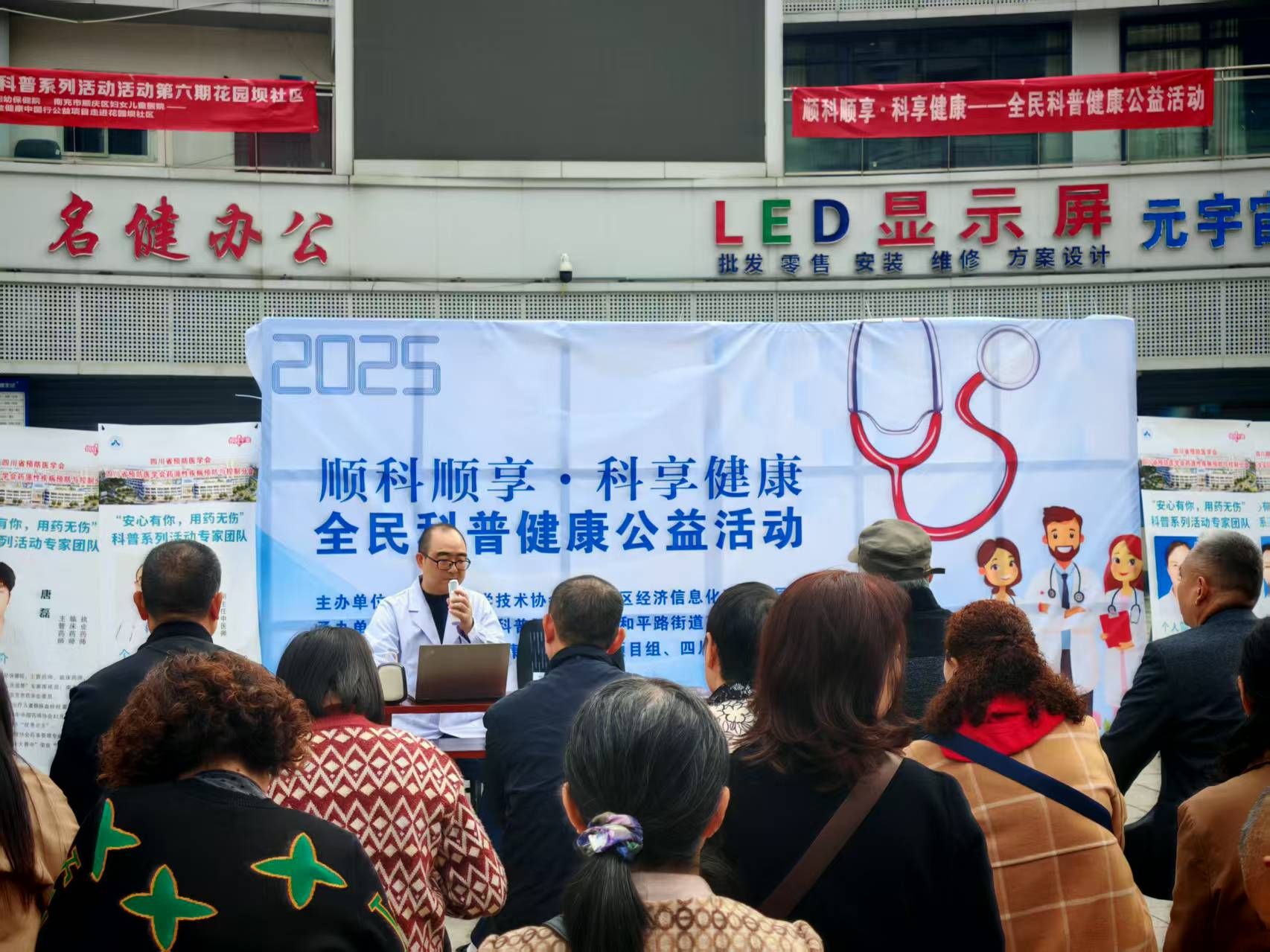 为助力健康知识普及,服务基层群众,11月11日下午,由民进南充市顺庆区基层委员会联合区科协、区经信和科技局等单位共同主办的“顺科顺享·科享健康”全民科普健康公益活动在和平路街道电脑城广场成功举行。
