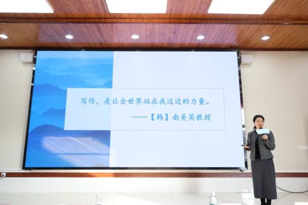 捐赠仪式结束后举行了“开明阅读——开明大讲堂”。伍苹为众多中小学老师传授了作文教学的“秘籍”。她结合自己的两本专著《作文可以这样教》《赋予孩子阅读的力量》,用互动问答的方式和现场的老师们展开教学探讨。她从作文的选题、审题、亮题、蛛网式剖题、追问、给法六个环节淬炼示范,引发了在场教师的浓厚兴趣与深入思考。现场学习研讨氛围十分浓厚。