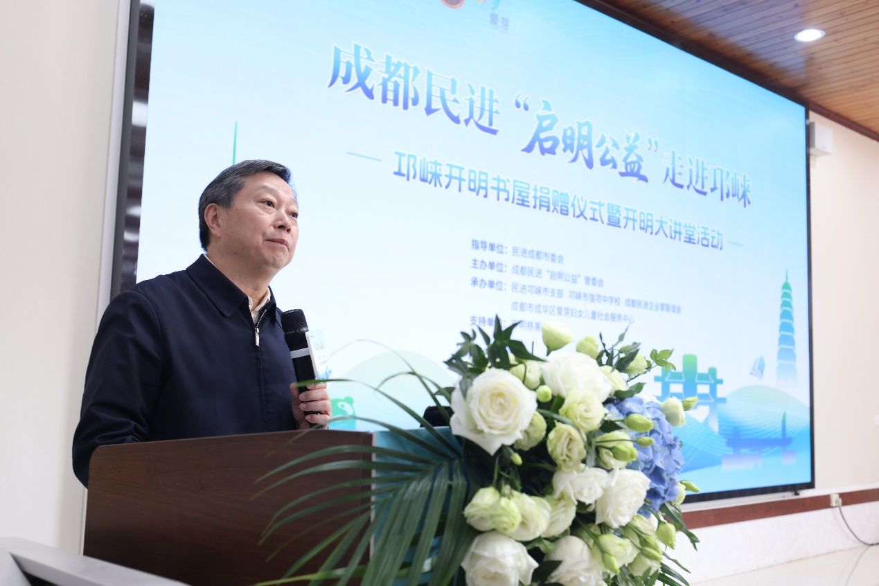 邛崃市教育局党组书记、局长张毅在致辞中对成都市委会及“启明公益”支持邛崃教育事业发展表达了感谢。杨建德围绕活动主题发表了讲话。他指出,作文课程的核心功能,是教会学生用文字、语言清晰、有序地表达思想与情感,同时培养其观察力、逻辑思维和创造力。中小学作文课不只是“教套路、背模版”,更是要帮孩子们练出会观察、能思考的“写作大脑”;学作文不仅是掌握语言技巧,更是练就思维力,为孩子的表达与深度写作打牢根基;写作文不只是写好一篇文章,还是帮孩子驾驭语言、激活思维,让表达既清晰又有人情味。学好语言,提升写作能力,就是帮助孩子们提升链接这个世界的能力。