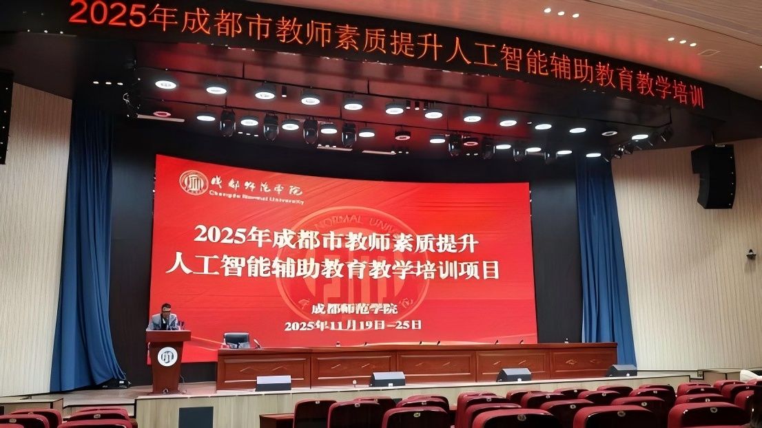 11月24日下午,民进五中支部主委郭刚老师受邀参与成都师范学院承办的2025年成都市教师素质提升项目——“人工智能辅助教育教学项目培训”,以“人工智能+英语——AI时代信息技术学科应用举例”为题开展专题讲座,赢得参训教师广泛好评。