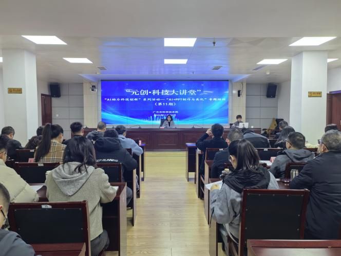 11月28日,民进广元市直属九支部会员瞿艺应邀赴市科学技术局开展“元创•科技大讲堂—AI+PPT制作与美化”专题培训,市科技局机关和直属事业干部职工参加培训。