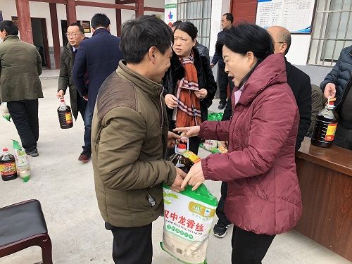 青川县大院乡锁家村、大茅村是赵爱武作为市领导的对口联系帮扶村。赵爱武一行在两村分别看望慰问了村两委干部和驻村第一书记,了解了脱贫攻坚进展情况,为贫困户群众送上了棉被、大米和食用油,并为大茅村送上了由民进书法家书写的春联。 民进广元市委秘书长杨伦、广元市民宗局局长宋洪亮、副局长母江参加了慰问活动。