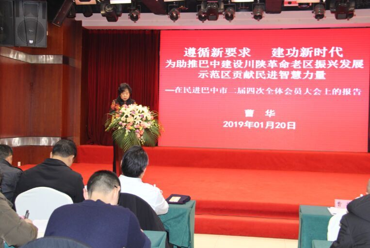 曹华强调,2019年民进巴中市委要从切实推进适应新时代要求的参政党地方组织建设、全力助推川陕革命老区振兴发展示范区建设、持续推进参政党地方组织有效履职三个方面,从切实推进思想政治建设、切实推进基层组织建设、切实推进制度建设、全力争取中央政策支持巴中发展、全力助推巴中教育开放合作、全力助推脱贫攻坚和乡村振兴、在民主监督中干真事、在参政议政中建诤言、在参加中国共产党领导的协商民主中讲真话等工作中,遵循新要求、建功新时代,为助推巴中建设川陕革命老区振兴发展示范区贡献民进智慧力量。