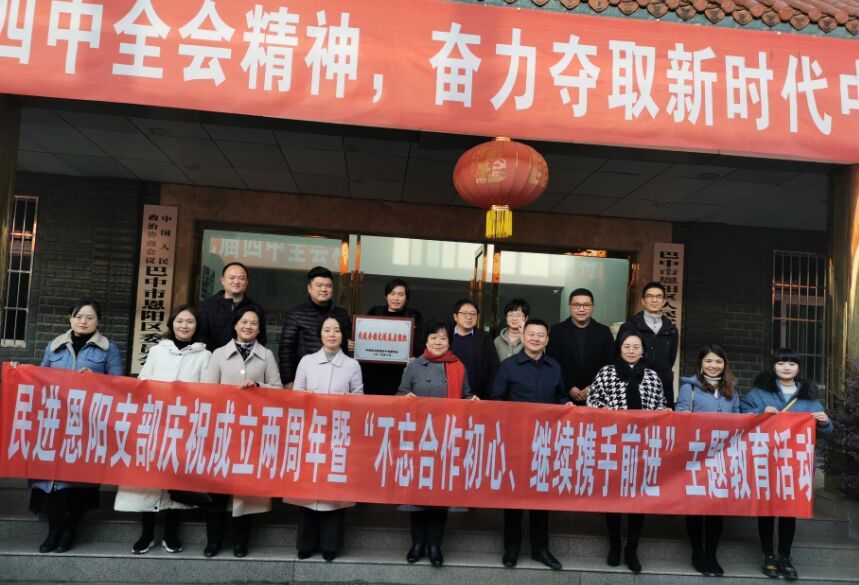 12月26日,民进恩阳支部庆祝成立两周年暨“不忘合作初心,继续携手前进”主题教育活动在区政协会议室举行。市政协副主席、民进巴中市委主委曹华,恩阳区委常委、统战部长、总工会主席朱夷平,民进巴中市委副主委、秘书长杨章圣出席会议,会议由民进市委常委、恩阳区政协副主席吴鸽主持。