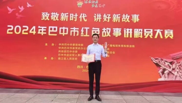 由中共巴中市委宣传部、巴中市文化广播电视体育和旅游局、巴中市总工会、巴中团市委,巴中市妇女联合会、巴中市退役军人事务局、巴中市文物局联合主办的2024年红色故事讲解员职业技能大赛,于5月17日在巴中市南江县博物馆演艺厅举行。民进恩阳支部会员吴林取得专业组成绩最高分,荣获专业组金牌讲解员。