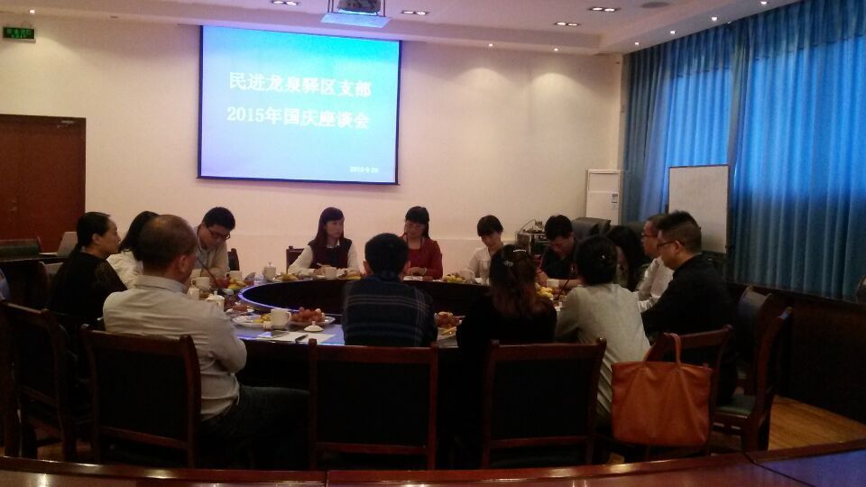 29日下午,民进龙泉驿区支部在四川旅游学院标2会议室召开“2015年国庆座谈会”。 区对外开放办副主任、支部副主委彭晓勤,龙泉驿区教科院院长、支部副主委周文群,安县教体局副局长(挂职)、支部支委杨晓文,区审计局副局长陈静,田东、冯世勇等会员共30余人参加会议。龙泉驿区人大副主任、支部支委沈越出席并主持会议。