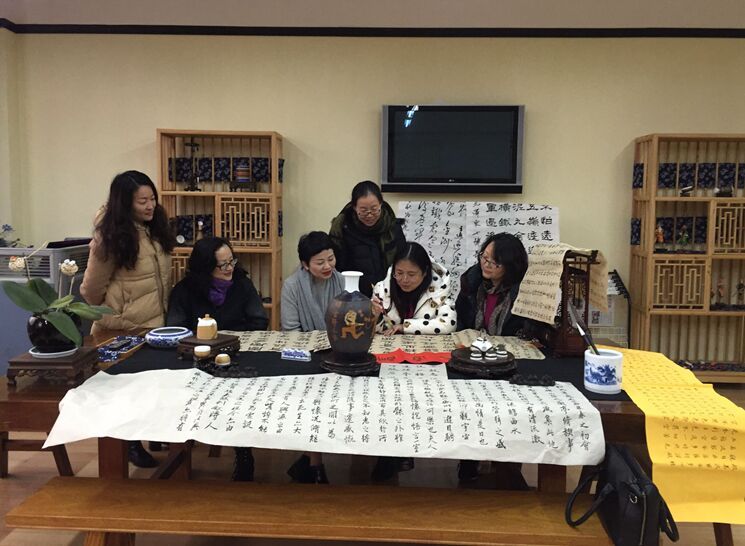 老师们还一致定下了每周三下午下班后在锦官驿小学的成都市教育学会书法教育专业委员会办公室集中习字,间周二晚上7:00—9:00在东郊记忆音乐之家参加四川省文化志愿者手鼓队学习的计划,还建起了“锦江民进书画群”,邀请热爱传统文化的民进锦江总支的会员们参加,大家一起快乐地书画,在享受传统文化的过程中,积极参政议政,挥洒家国情怀。