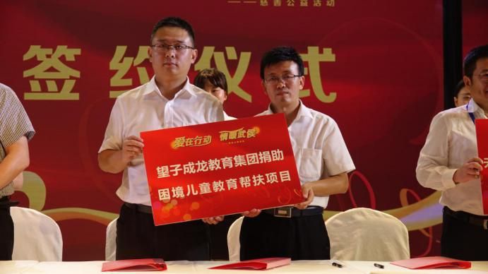 活动现场举行了为白玉县灯笼小学、麻绒小学155名困难学生募捐,企业结对签约等仪式。望子成龙教育集团董事长蒋杨斌现场签约捐助困境儿童教育帮扶项目,为武侯区的孤儿、低保户家庭儿童及其他困境儿童提供了价值300万元的教育帮扶资金,用于孩子的课外教育,可根据孩子的兴趣爱好、意愿选择课程学习,一直帮扶到孩子高中毕业。