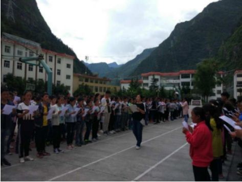 9月4日至6日,陈怡一到九龙县沙坪职业中学,就加入到七年级的军训中,在两个毕业班语文教学之余还义务辅导七年级全体学生诵读《论语》,把国学经典诵读的种子撒播到沙坪职业中学。让学生们读一些经典,懂一些道理,养一份静定,悟一些文化,炼一份童子功,为其终生发展打下坚实的文化和品格基础。