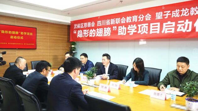 “切实履行企业社会责任,积极弘扬正能量。”11月19日下午,由成都市武侯区慈善会、四川省新联会教育分会、望子成龙教育集团等多方共同发起的“隐形的翅膀”公益慈善项目在成都正式启动。民革成都市委会副主委、成都市武侯区慈善会会长、武侯区政府副区长林金辉,四川省委统战部新阶处副处长赵怡,成都市武侯区慈善会常务副会长、武侯区民政局局长江新胜,武侯区慈善会执行副会长、武侯区民政局副局长张德才,民进会员、望子成龙教育集团董事长蒋杨斌,以及武侯区慈善会、武侯区关爱援助中心等相关人士出席了启动仪式。