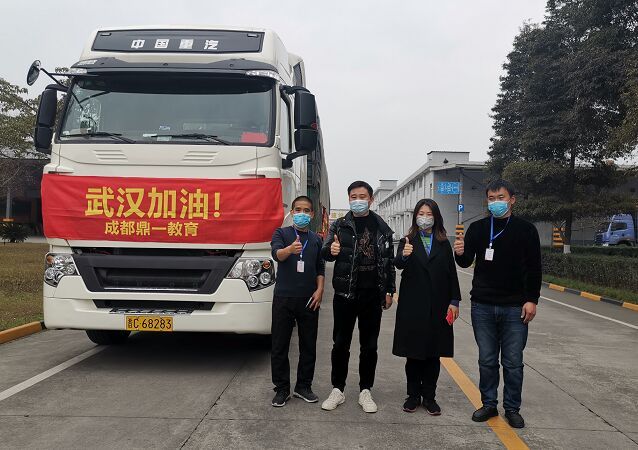 2月13日晚,在唐敏的组织协调下,两辆13.5米大卡车,满载鼎一培训学校和四川省国祥建设工程有限公司捐赠的总价值近30万元的方便食品和生活物资,各由2名司机轮换驾驶,经过15小时,于2月14日中午1点把爱心物资平安送达并交付给了武汉雷神山医院。