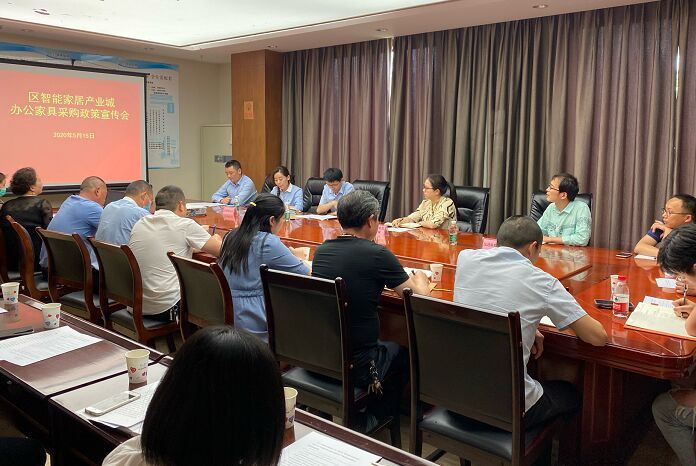 近日,民进新都总支了解到新都区本土家具品牌在市级、区级政府部门办公采购中占比不高,为帮助新都区家具企业更好地参与政府采购,5月15日,总支联合区交易中心、区家管委在智能家居产业会议室召开成都市办公家具采购政策宣传座谈会,区内14家品牌家具企业参加会议。