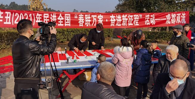 民安国泰逢盛世,牛年大吉度新春。为积极响应民进中央、四川省委“辛丑(2021)年民进全国‘春联万家·奋进新征程’活动”,2月5日,民进双流总支赴双流区黄甲街道八角水寨开展送春福活动。总支会员程绍君、卢勇等5位艺术家,为当地群众送上了新年的美好祝愿。