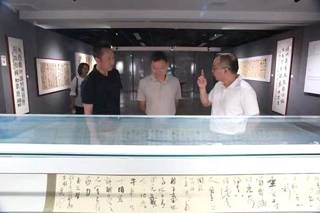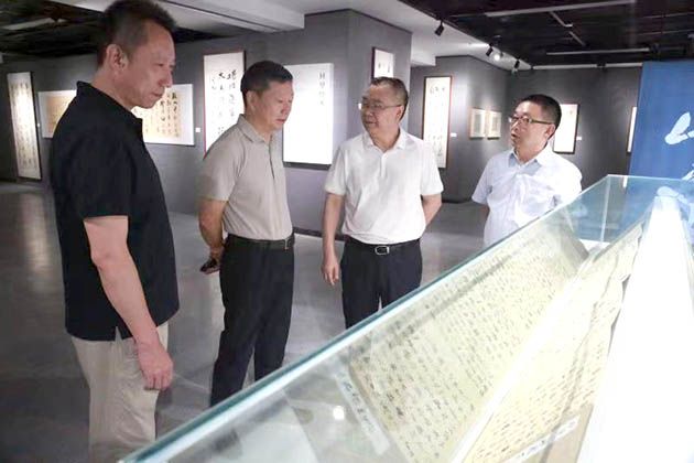 6月28日下午,市委会主委、成都市政协副主席杨建德赴成都市文化馆参观“云顶行云——汤文俊书法艺术展”,金堂县总支原主委、县人大常委会副主任张立诚,成都开明画院副院长、成都市书法家协会常务副主席汤文俊陪同参观。